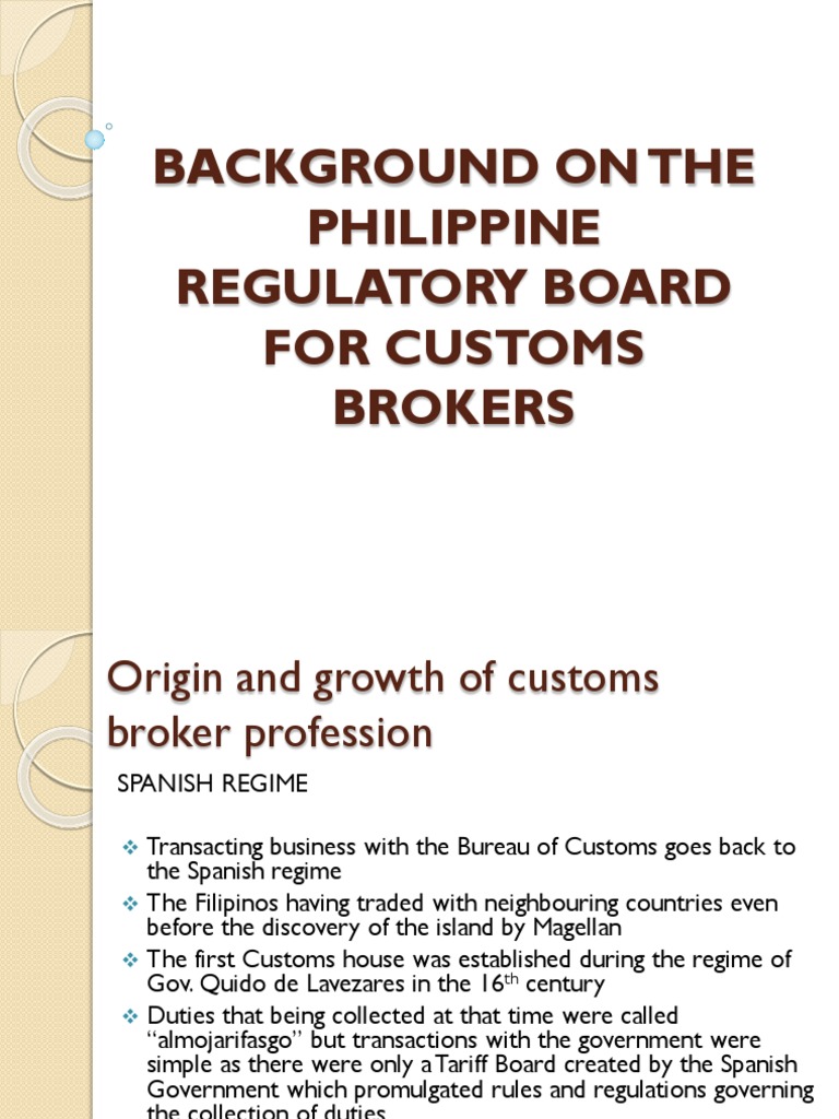 1 Background On The Philippine Regulatory Board For Customs Pdf Licensure Customs